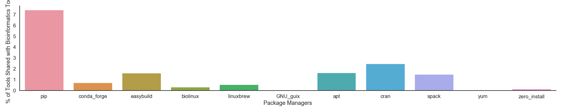 12 The sets obtained for Bioinformatics Tools and the non-omics package managers in 8 were compared with the set intersection function to find the number of commonalities between Bioinformatics Tools and the non-omics package managers.