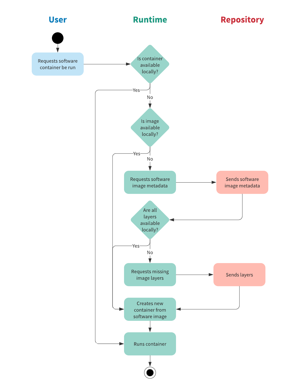 A more recent software distribution solution is containerization. The end-user downloads a container “image” that includes the software, dependencies, and anything else necessary to run the software. Though the imaged software is not typically itself installed, many do require the installation of containerization runtime software. When run, the runtime software creates a consistent, isolated sandbox environment, then runs the imaged software inside the sandbox[11]. This sandbox design makes the images both highly portable (compatible with different computers) and easily shareable (transferable between different computers), which has already led to wide adaptation in bioinformatics[7,12].